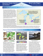 The “Quarterly Climate Impacts and Outlook: Great Lakes Region” is a brief bulletin published jointly by NOAA and Environment Canada summarizing the latest season’s weather and water level conditions and weather and water level-related impacts over the Great Lakes and provides an outlook for the upcoming quarter. It is published roughly four weeks after the end of each season. The geographic scope covers the Great Lakes basin and includes the international portion of the St. Lawrence River. It is published in March, June, September and December covering Winter (Dec-Feb); Spring (Mar-May); Summer (Jun-Aug) and Fall (Sep-Nov).