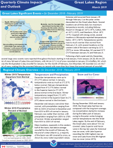 The “Quarterly Climate Impacts and Outlook: Great Lakes Region” is a brief bulletin published jointly by the National Oceanic and Atmospheric Administration and Environment and Climate Change Canada, summarizing the latest season’s weather and water level conditions and weather and water level-related impacts over the Great Lakes and provides an outlook for the upcoming quarter. It is published roughly four weeks after the end of each season. The geographic scope covers the Great Lakes basin and includes the international portion of the St. Lawrence River. It is published in March, June, September and December covering Winter (December-February); Spring (March-May); Summer (June-August) and Fall (September-November).